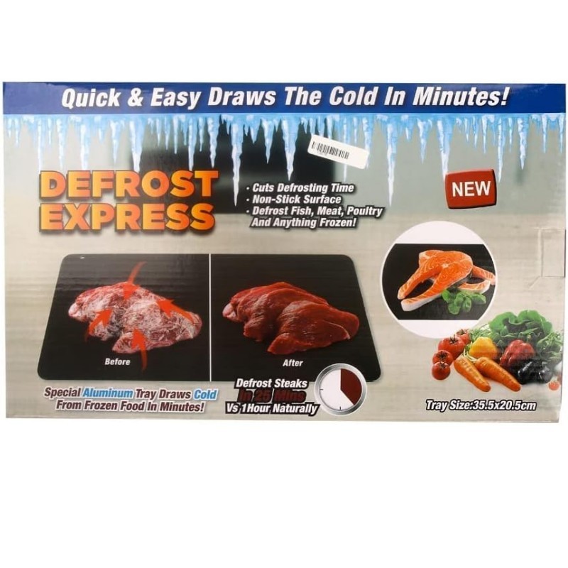 صينية إذابة الثلج السريعة هي ملحق مطبخي لا غنى عنه مصمم لتقليل وقت إذابة الثلج بشكل كبير. مصنوعة من الألمنيوم الخاص، تسحب هذه الصينية البرودة من الأطعمة المجمدة في دقائق، مما يوفر لك الوقت والجهد. تضمن سطحها غير اللاصق سهولة التعامل والتنظيف، مما يجعلها مثالية لإذابة الأسماك واللحوم والدواجن وأي شيء آخر تحتاجه جاهزًا بسرعة. مع حجم صينية سخي يبلغ 35.5 × 20.5 سم، فهي عملية وفعالة للاستخدام اليومي.