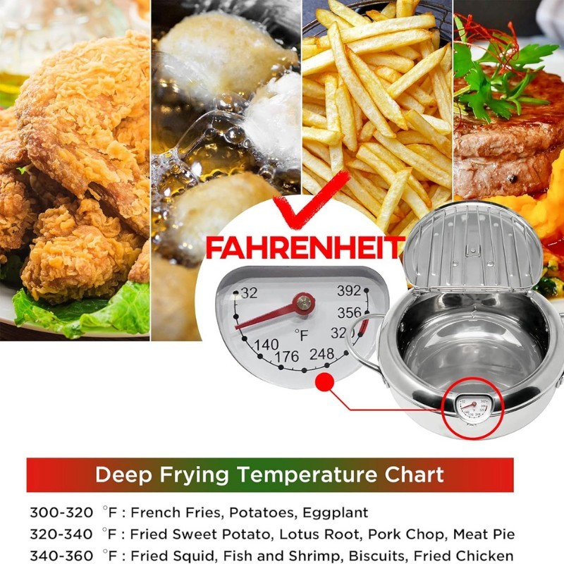 وعاء قلي عميق من الفولاذ المقاوم للصدأ مع مقياس حرارة
