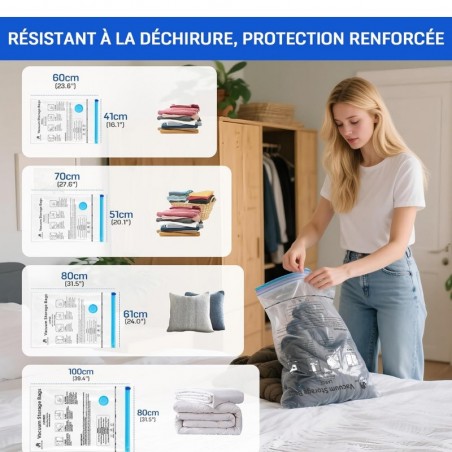 تعتبر هذه الحقيبة المفرغة مثالية لتقليل الفوضى وزيادة مساحة التخزين. مثالية للفراش والملابس، يمكن أن توفر حتى 70% من المساحة. قياس الحقيبة 60x80 سم، مما يوفر مساحة كافية لمجموعة متنوعة من العناصر. مثالية لتنظيم المنزل والسفر.