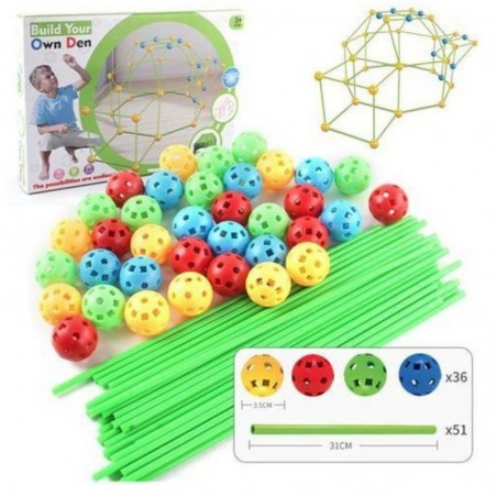 مجموعة بناء عشك الخاصة مثالية لإشعال الخيال وتطوير مهارات حل المشكلات لدى الأطفال. مع القضبان والوصلات الملونة، يمكن للأطفال إنشاء هياكل لا حصر لها مثل الحصون، وصواريخ الفضاء، أو القلاع. المجموعة سهلة التركيب والتفكيك، مما يجعلها مثالية للعب في الداخل والخارج.