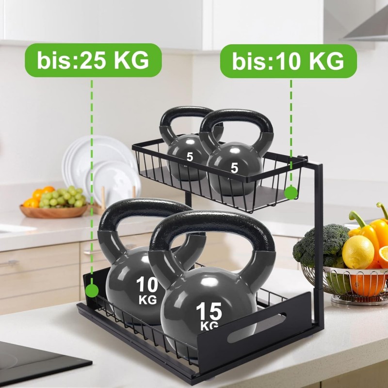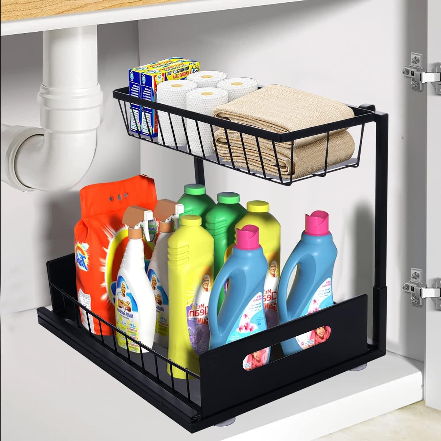 منظم تخزين تحت الحوض مع سلال منزلقة