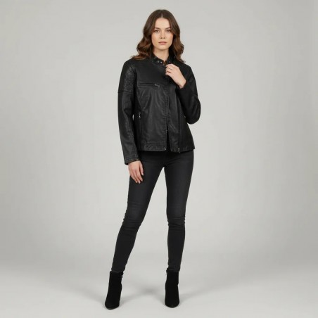 هذا الجاكيت الجلد الأسود الكلاسيكي للنساء هو عنصر أساسي في أي خزانة أزياء متقدمة. مصنوع من جلد عالي الجودة، يتميز بتصميم أنيق مع مقاس عصري. يوفر الجاكيت تنوعًا وأناقة، سواء كنت ترتدين ملابس أنيقة لقضاء ليلة خارج أو تضيفين طبقة أنيقة إلى مظهرك غير الرسمي. مع بنائه المتين وجاذبيته العصرية، سيصبح هذا الجاكيت بسرعة القطعة المفضلة لديك على مدار جميع الفصول.