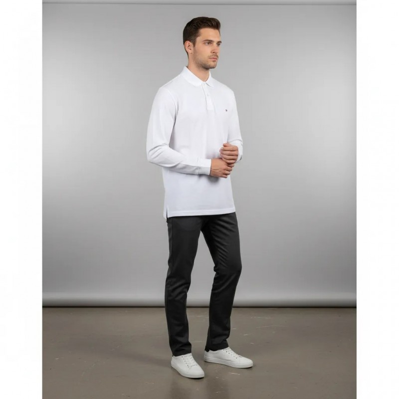 قميص بولو أبيض كلاسيكي بأكمام طويلة