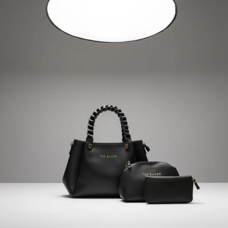 يتضمن هذا الطقم الأنيق حقيبة يد سوداء أنيقة، ومحفظة متطابقة، وحقيبة صغيرة. مصنوعة من مواد عالية الجودة، تم تصميم هذا الطقم ليجمع بين الوظائف والأناقة، مما يجعله خيارًا مثاليًا للاستخدام اليومي أو المناسبات الخاصة.