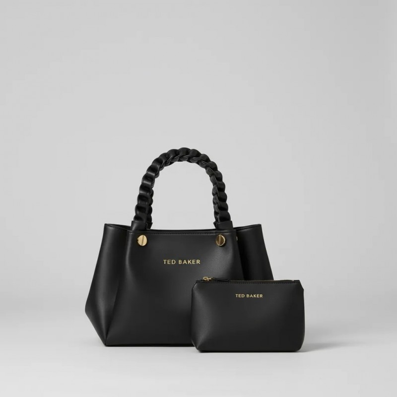 طقم حقيبة يد سوداء أنيقة وإكسسوارات