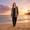 يتميز هذا الطقم العصري من الكاردجان بتصميم عصري بنقشة النمر، مما يجعله مثالياً لإضافة لمسة من الأناقة إلى خزانة ملابسك غير الرسمية. مصنوع من قماش مريح وقابل للتنفس، هذا الطقم مثالي ليوم على الشاطئ أو مساء غير رسمي.