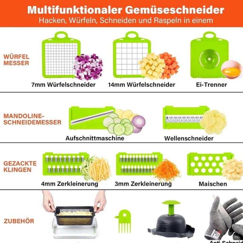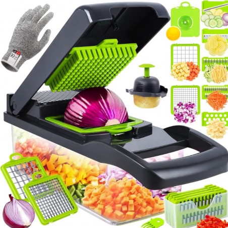 حوّل وقت تحضير الطعام في مطبخك مع مفرمة وخافضة الخضار متعددة الوظائف. مصممة بعدة شفرات قابلة للتبديل، تتيح لك هذه الأداة فرم وقطع وشريحة مجموعة متنوعة من الخضروات في ثوانٍ. تضمن التصميم القوي المتانة، بينما يحميك القفاز المرفق. مثالية لتحضير السلطات، والحساء، والوجبات المعقدة بسهولة، هذه المفرمة ضرورية لكل طباخ منزلي.