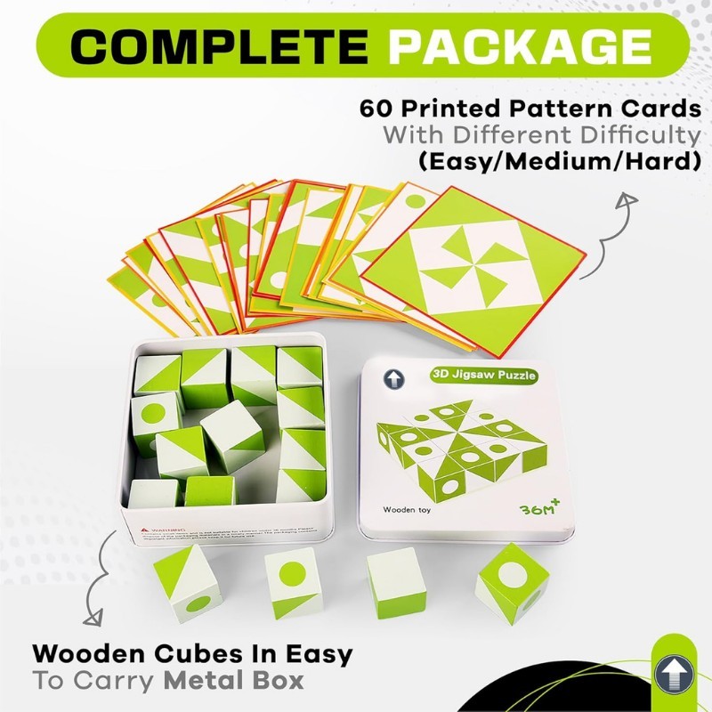 لعبة بازل خشبية ثلاثية الأبعاد مع 60 بطاقة نمط