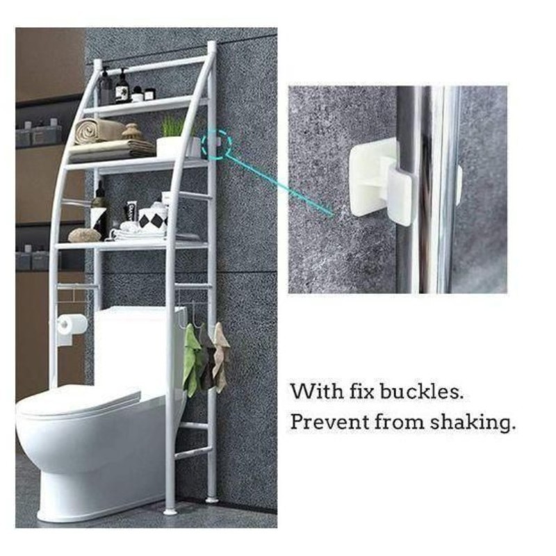 This 3-tier over-the-toilet shelf organizer is the perfect solution for adding extra storage space in your bathroom. With its sleek and sturdy design, it fits neatly over most standard toilets, providing ample space for towels, toiletries, and other essentials. The shelves are easy to assemble and come with hooks and a roll paper rack for added convenience.