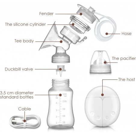 The thoughtful construction includes components like a flexible silicone cylinder that ensures a secure fit while maximizing comfort during use. The duckbill valve prevents any backflow of milk, maintaining hygiene throughout the process.