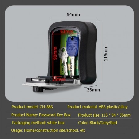 The Password Key Box offers a secure and convenient way to store and access your keys. Made from ABS plastic and alloy, this key box is built to last and withstand harsh environments. Ideal for use at home, on construction sites, or in schools, it features a robust password mechanism to ensure your keys are safe and accessible only to authorized users.