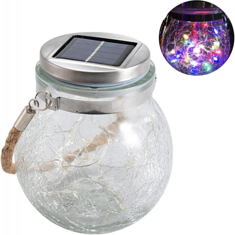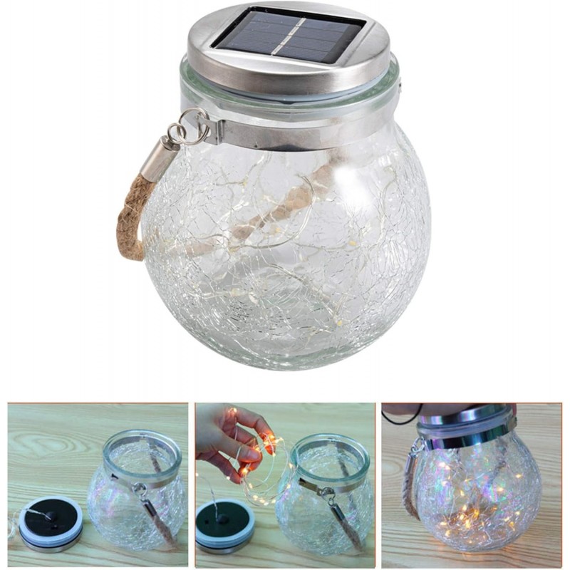 This solar-powered crackle glass jar light is perfect for adding a touch of magic to your garden or patio. The jar features a unique crackle glass design and is equipped with a solar panel to charge during the day, providing beautiful ambient lighting at night. Easy to hang or place on tables, it's an ideal choice for parties, weddings, or everyday decoration.