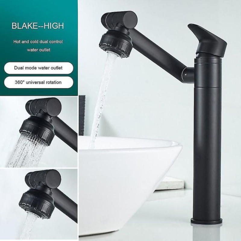 This 360° rotatable matte black bathroom faucet combines contemporary design with practical functionality. Its full range of motion allows for convenient use, whether you're washing your face or cleaning the basin. Crafted from high-quality materials, this faucet offers durability and a long-lasting finish. The matte black finish adds a touch of elegance and sophistication to any bathroom decor.