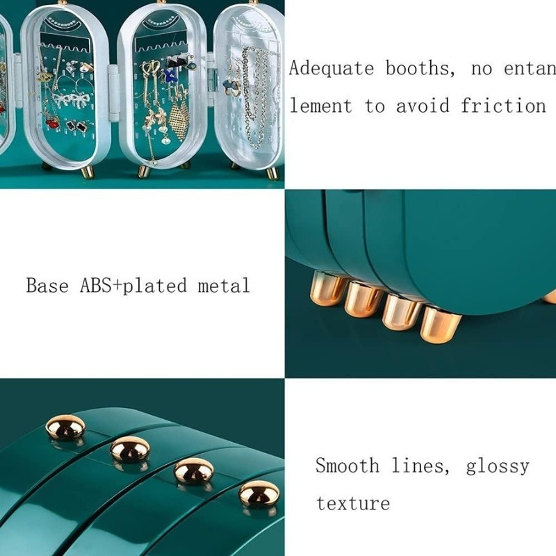 This rotating jewelry organizer stand features a sleek design that allows you to store and display your favorite jewelry pieces with ease. With multiple compartments and hooks, it is perfect for organizing necklaces, bracelets, earrings, and rings. Its compact size makes it ideal for any dresser or vanity, and its elegant style complements any decor.