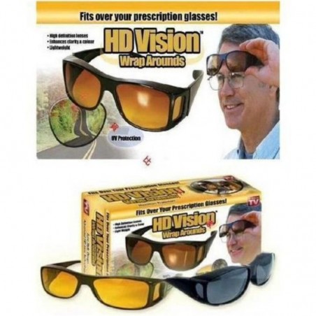 HD Vision Wrap Arounds are designed to fit over your prescription glasses, providing high definition lenses that enhance clarity and color. These lightweight glasses offer UV protection, making them perfect for outdoor use while ensuring comfort and style.
