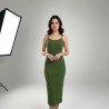 Elegant Olive Green Ribbed Midi Dress