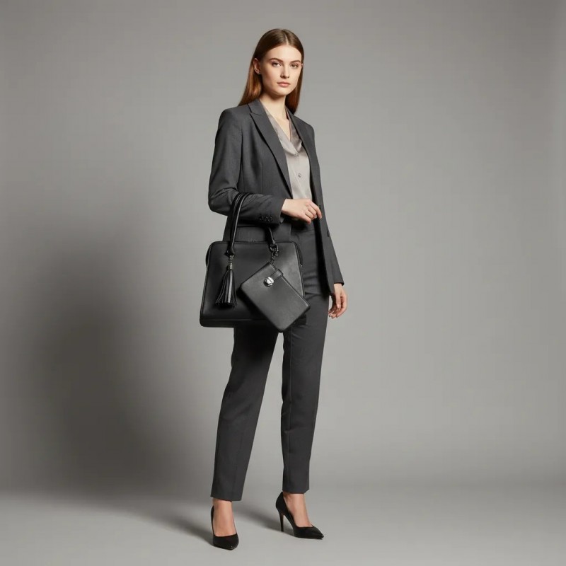 Elevate your style with this luxurious black leather handbag that combines functionality with fashion. Featuring a sleek design, this handbag is perfect for any occasion, whether it's a day at the office or an evening out. The bag comes with a stylish tassel charm and a matching pouch for added convenience, ensuring you have everything you need at your fingertips. Crafted from high-quality materials, this handbag promises durability and timeless appeal.