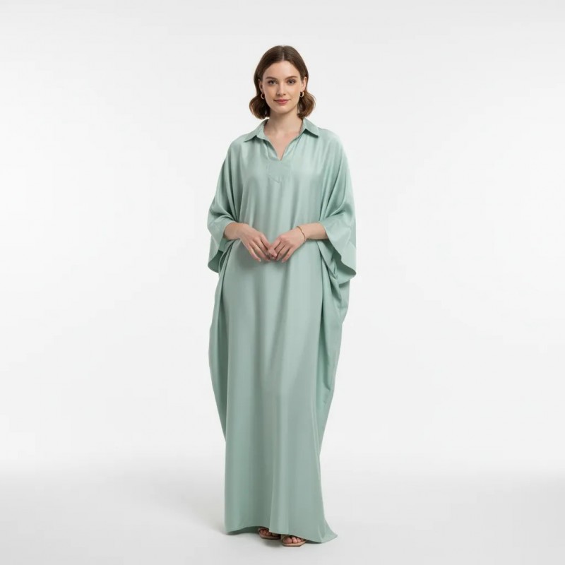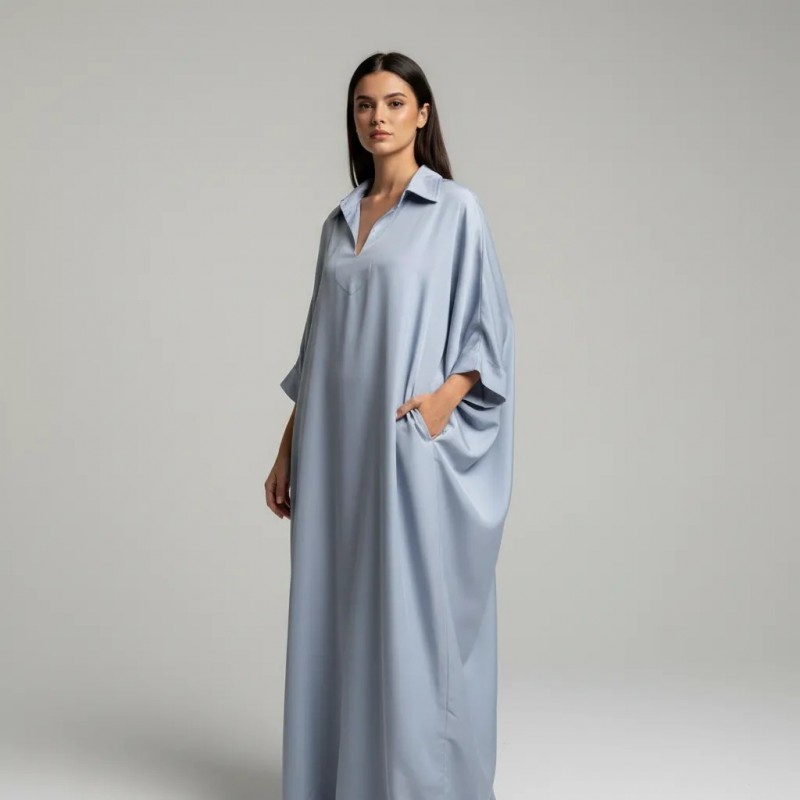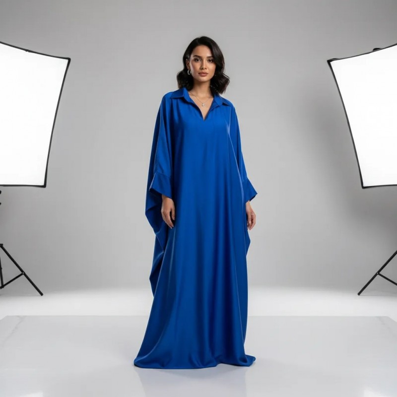 This elegant blue kaftan dress offers a blend of style and comfort. Designed with a flowy silhouette, it's perfect for both casual and formal events. Crafted from high-quality fabric, it ensures a comfortable fit while adding a touch of sophistication to your wardrobe.