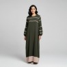 Step out in style with this exquisite long sleeve maxi dress, crafted to offer both comfort and elegance. The dress showcases a timeless design with subtle striped details across the bodice and sleeves, adding a touch of modern flair. Made from high-quality materials, it ensures a flattering fit and all-day comfort. Whether you're attending a special event or enjoying a casual day out, this dress is your go-to choice for effortless elegance.