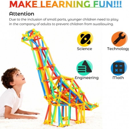 Unleash your child's potential with the STEM Learning Building Kit, designed to make education thrilling and engaging. Featuring colorful, interlocking pieces, this kit promotes the development of vital skills in science, technology, engineering, and math. Ideal for hands-on learning, it encourages creativity, problem-solving, and teamwork. Suitable for children who love to explore and build, this kit provides endless hours of educational fun. Note: Contains small parts; adult supervision recommended for younger children.