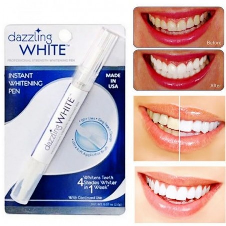 Le Stylo de Blanchiment Instantané Dazzling White offre un moyen pratique et efficace d'éclaircir votre sourire. Avec sa formule professionnelle fabriquée aux États-Unis, ce stylo blanchissant peut éclaircir vos dents jusqu'à quatre nuances en une semaine d'utilisation régulière. L'applicateur en brosse facile à utiliser garantit une application précise, ce qui facilite la cible des taches et de la décoloration. Parfait pour un blanchiment en déplacement, ce stylo est compact, facile à transporter et offre des résultats visibles. Transformez votre sourire avec confiance et profitez des avantages d'une apparence plus blanche et plus éclatante.