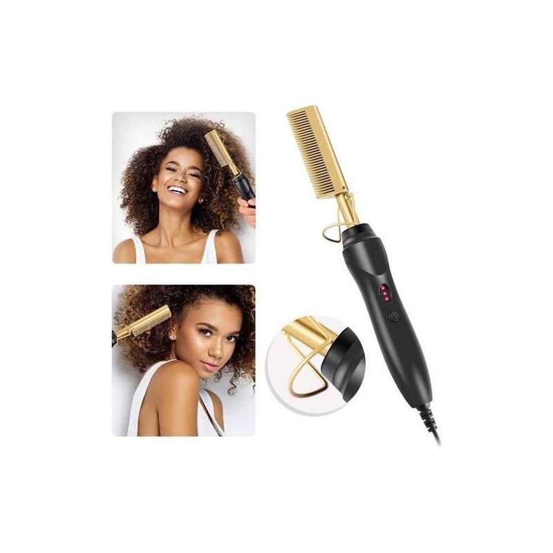 Transformez votre routine de coiffage avec le Peigne Électrique Professionnel pour Lisser les Cheveux. Doté d'une technologie de chauffage avancée, ce peigne chauffe rapidement pour offrir des résultats lisses et soyeux en quelques minutes. Son design ergonomique assure une prise en main confortable, tandis que le peigne plaqué or garantit une distribution uniforme de la chaleur pour éviter d'endommager les cheveux. Idéal pour tous les types de cheveux, cet outil de coiffage est parfait pour obtenir des mèches lisses et sans frisottis sans effort.