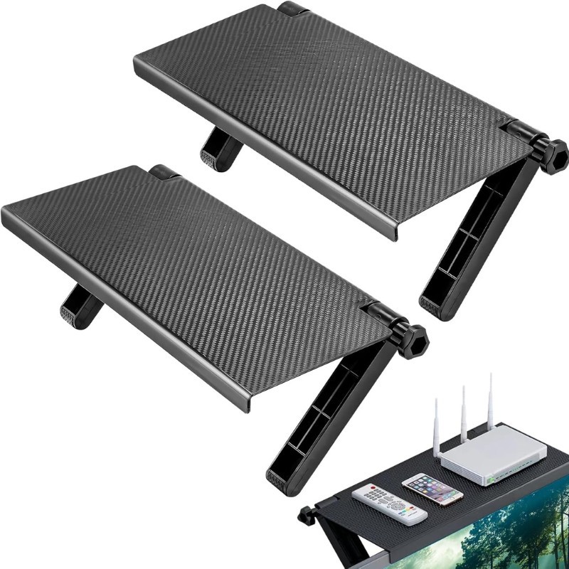 Transformez le dessus de votre TV en un espace de rangement fonctionnel avec cette étagère de rangement TV réglable, élégante et robuste. Conçue pour être facilement installée sans outils, elle offre une plateforme stable pour les télécommandes, les petites plantes ou les objets décoratifs. La finition en fibre de carbone élégante complète tout décor moderne, tandis que son design gain de place vous aide à garder votre salon propre et organisé. Profitez de la commodité et de l'efficacité de cette solution de rangement polyvalente.