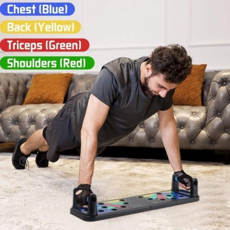 Transformez votre routine d'entraînement à domicile avec la Planche à Pompes Multifonctionnelle. Cet outil de fitness innovant est codé par couleur pour engager différents groupes musculaires, y compris votre poitrine, votre dos, vos triceps et vos épaules, garantissant un entraînement complet du haut du corps. La planche est idéale pour les passionnés de fitness de tous niveaux, offrant polyvalence et commodité dans un design compact. Que vous souhaitiez développer votre force ou tonifier vos muscles, cette planche à pompes est votre compagnon d'exercice parfait.