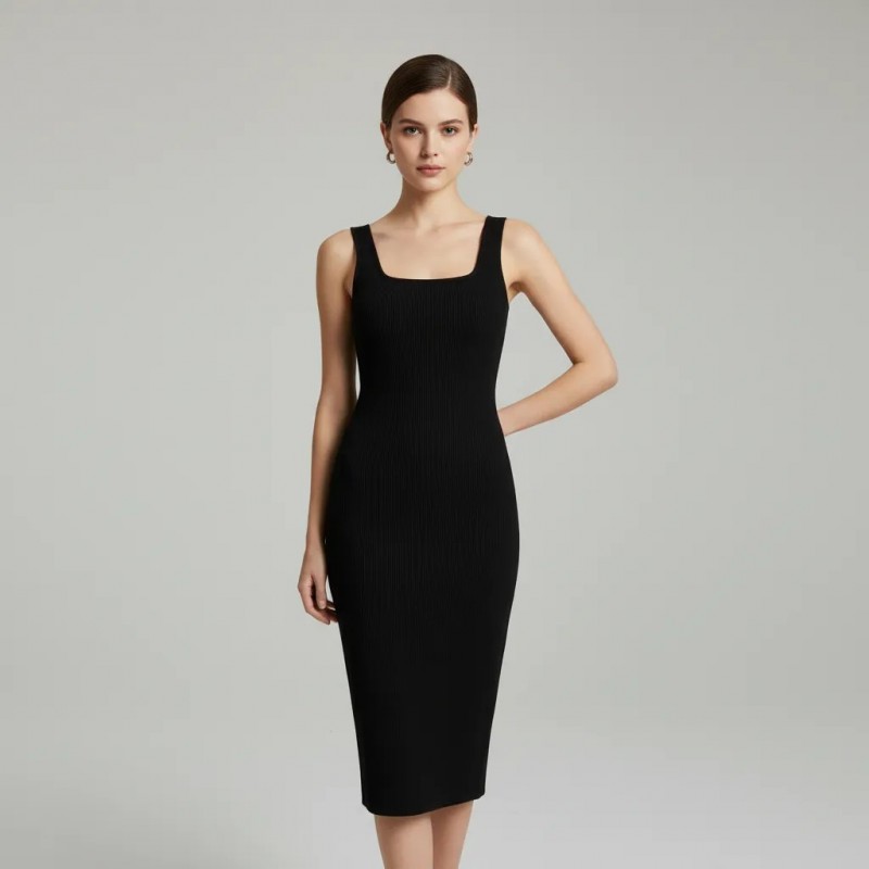 Cette robe midi noire élégante est conçue pour ceux qui apprécient le style classique et la sophistication. La robe présente une silhouette épurée et moulante avec un décolleté carré qui met en valeur votre forme naturelle. Fabriquée à partir de matériaux de haute qualité, elle offre à la fois confort et durabilité. Que vous assistiez à un événement formel ou à une soirée, cette robe est conçue pour vous faire paraître et vous sentir à votre meilleur. Associez-la à vos accessoires préférés pour un look complet et soigné.