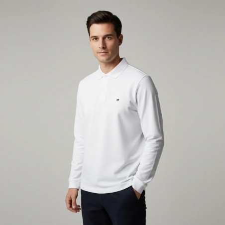 Polo Blanc Classique à Manches Longues