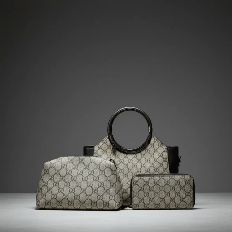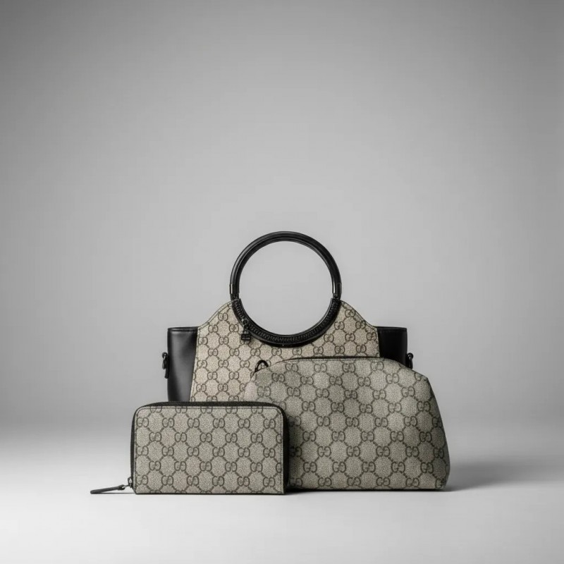 Élevez votre style avec cet ensemble de sacs à main designer élégant, présentant un motif sophistiqué et un savoir-faire de haute qualité. L'ensemble comprend un grand sac à main principal avec une poignée circulaire unique et une pochette assortie, offrant polyvalence et commodité pour une utilisation de jour comme de nuit. Fabriqué avec des matériaux durables, cet ensemble de sacs à main est conçu pour faire une déclaration tout en offrant un espace de rangement suffisant pour vos essentiels.