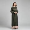 Affichez votre style avec cette magnifique robe maxi à manches longues, conçue pour offrir à la fois confort et élégance. La robe présente un design intemporel avec des détails rayés subtils sur le corsage et les manches, ajoutant une touche de modernité. Fabriquée à partir de matériaux de haute qualité, elle garantit une coupe flatteuse et un confort tout au long de la journée. Que vous assistiez à un événement spécial ou que vous profitiez d'une journée décontractée, cette robe est votre choix incontournable pour une élégance sans effort.